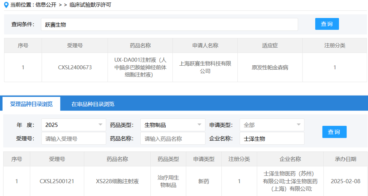 [2] 2025年2月8日,士泽生物医药申报的人异体通用“现货型”神经前体细胞注射液“XS228细胞注射液”IND申请也获得受理,并且此前该公司已有多款细胞注射液IND申请获受理,在神经系统疾病治疗领域持续发力。